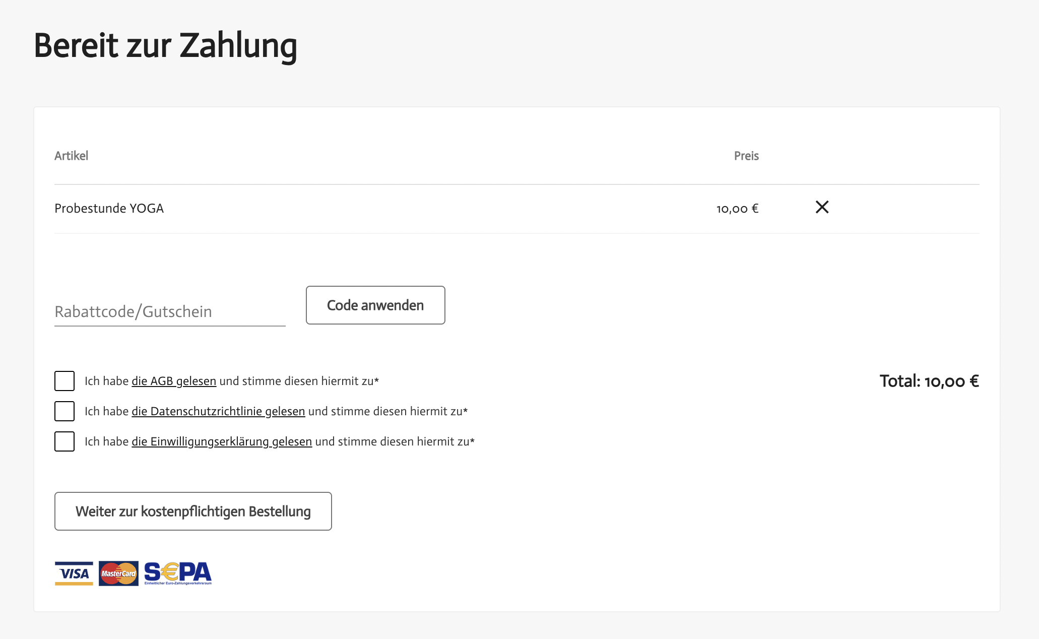 YOGO bietet dir eine reibungslose Lösung für automatische Zahlungen und Rechnungsstellung – so kannst du wiederkehrende Mitgliedsbeiträge ganz einfach mit deiner bevorzugten Zahlungsmethode abwickeln. Ob SEPA, Kartenzahlung, PayPal, Apple Pay, Google Pay und mehr.